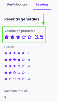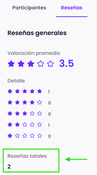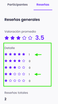 👀 El total de reseñas y comentarios, indicando quién calificó, cuántas estrellas asignó y su opinión.