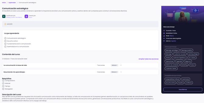 Paso 4: Revisa la landing page del curso, donde encontrarás: