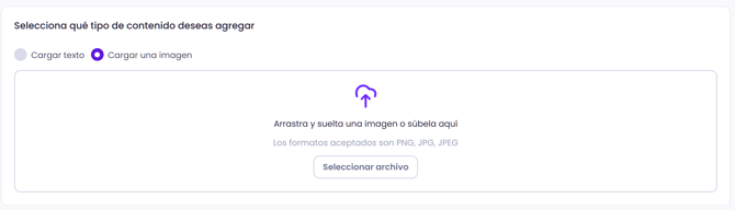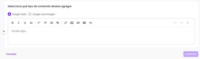 ✍️ Cargar texto: te permite redactar el aviso directamente y agregar imágenes, videos, archivos u otros elementos para personalizarlo según tus necesidades.