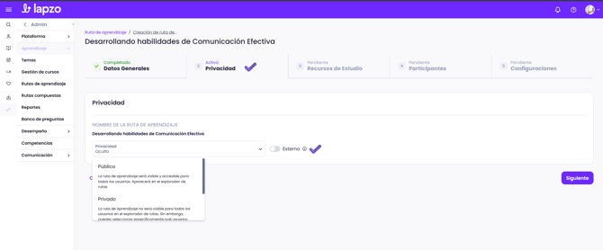 Antes, solo el admin podía inscribir a los usuarios, lo que generaba mucha carga operativa. Ahora, los colaboradores pueden auto inscribirse en rutas visibles para ellos, según cómo configures la privacidad. Menos trabajo manual para ti y más autonomía para ellos.