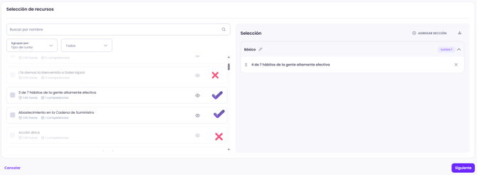 Habilita la sección “Elige quiénes podrán visualizar el curso” agrupando por: