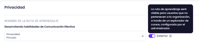 Actívalo si quieres que la ruta sea visible para usuarios fuera de la organización.