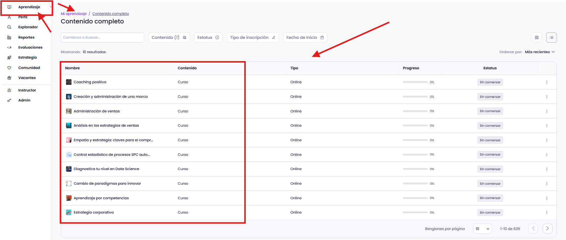 Ve al menú → Mi Aprendizaje