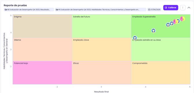 🧠 Pro Tip: Puedes comparar resultados de distintos ciclos. Por ejemplo, cruza la evaluación de desempeño de un periodo con el potencial de otro ciclo cerrado para obtener insights más estratégicos.