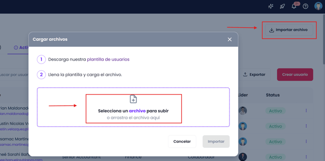 Vuelve a la sección de Usuarios y selecciona “Importar archivo”.