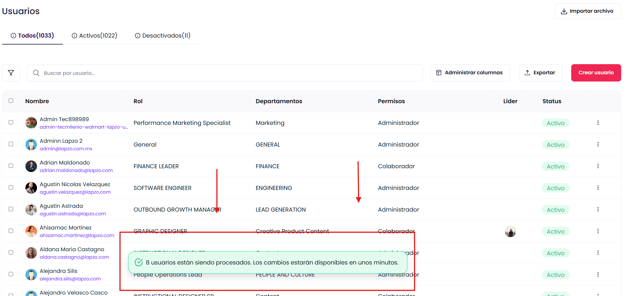 💻Desactivación Y activación masiva de usuarios en la plataforma