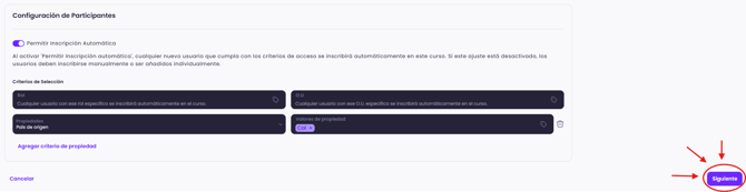 Paso 6: Guardar los cambios. El sistema gestionará las inscripciones automáticas con base en estos criterios.