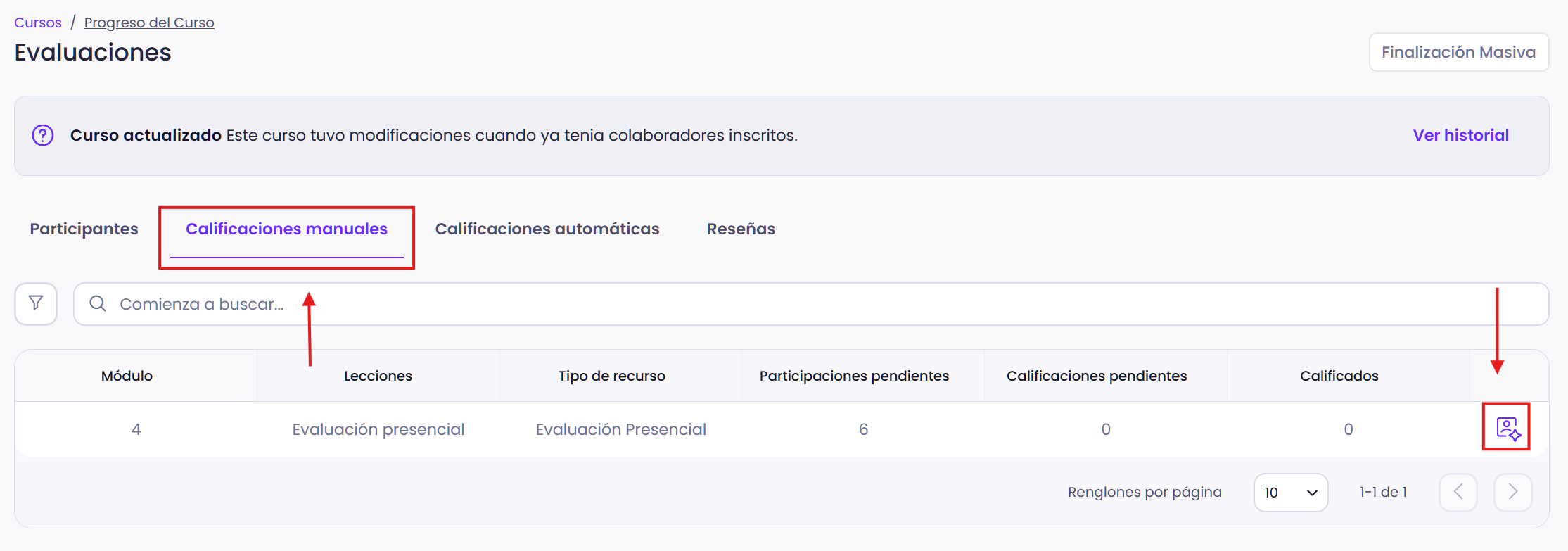 🔹 Paso 8: Entra en Calificaciones manuales y daleclick al icono señalado en la imagen:
